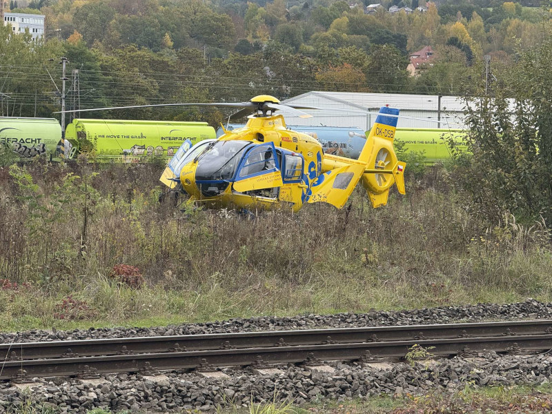 Děčín - Ve čtvrtek 23. října krátce v poledne vyjížděly záchranné složky k nehodě u Východního nádraží v Děčíně, kde mělo dojít ke srážce vlaku s osobou. Ta utrpěla velmi vážné poranění, na místě přistával vrtulník Letecké záchranné služby.