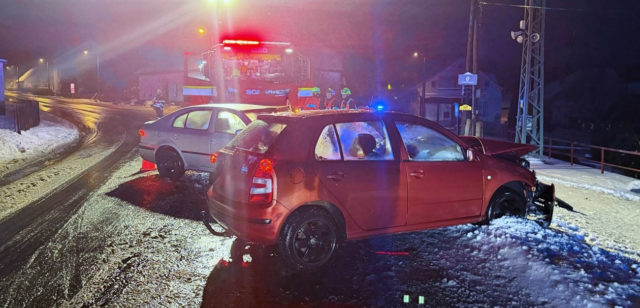 Libouchec - Profesionální hasiči Petrovice a dobrovolní hasiči Libouchec vyjeli v pátek 9. ledna v 16:31 k važné dopravní nehodě na silnici z Libouchce do Tisé. Při karambolu došlo ke srážce dvou aut. Silnice byla po dobu zásahu zcela uzavřena.