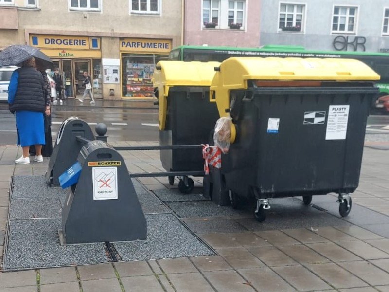 Děčín - Kvůli nutné opravě podzemního kontejneru na plastový odpad byly na stanoviště na Tyršově ulici dočasně umístěny dvě náhradní nádoby o objemu 1 100 litrů. Podzemní kontejner je proto nyní uzavřen a zabezpečen proti používání.