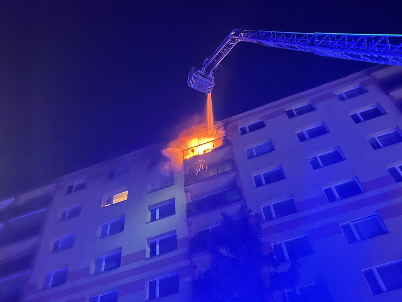 Ústí nad Labem - V noci z pondělí na úterý v 0:36 hodin byl na krajské operační a informační středisko HZS Ústeckého kraje ohlášen požár bytu a lodžie v osmém patře bytového domu v ulici Větrná v Ústí nad Labem. Na místo okamžitě vyjelo pět jednotek hasičů.