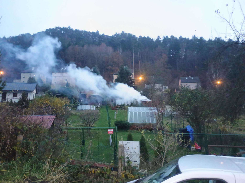 Děčín - Celkem tři hasičské jednotky (profesionální hasiči Děčín, dobrovolní hasiči Staré Město a Horní Žleb) vyjely ve čtvrtek 13. listopadu v 15:20 ke kouři, který stoupal ze zahradní kolonie směrem na Škrabky.