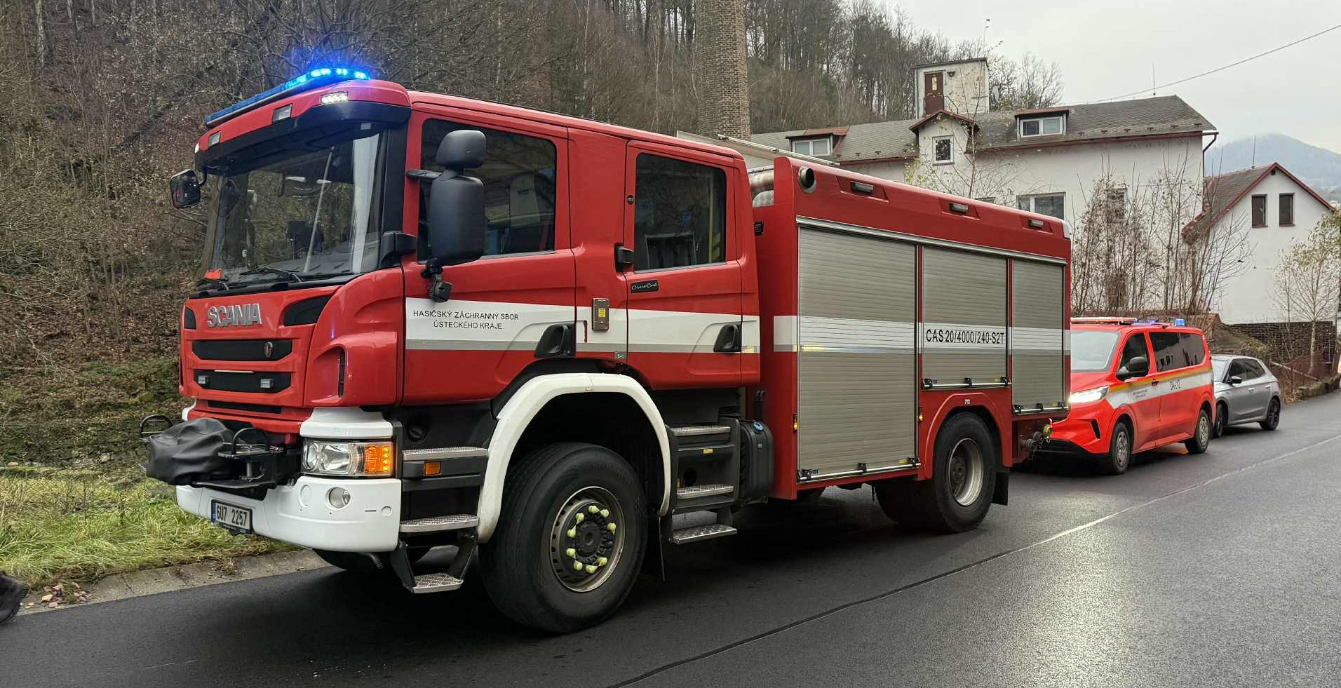 Děčín, Přípeř - Celkem čtyři jednotky hasičů (profesionální hasiči Děčín, dobrovolní hasiči Horní Žleb, Staré Město a Křešice) vyjely v úterý 2. prosince v 8:28 k nahlášenému požáru krbu v rodinném domě v Drážďanské ulici v Děčíně. Podle oznámení vycházel od topidla kouř.