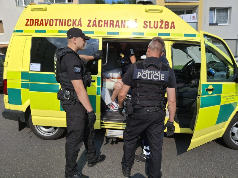 Muž kvůli silné opilosti upadl a byl v bezvědomí. Strážníci mu poskytli první pomoc a přivolali záchranáře. Po "probuzení" byl muž agresivní, tak mu strážníci nasadili pouta. Po příjezdu záchranářů byl muž předán do jejich péče a strážníci provedli doprovod až do nemocnice. Po celou dobu byl muž agresivní a hlídce nadával. Celá věc je nadále v šetření.