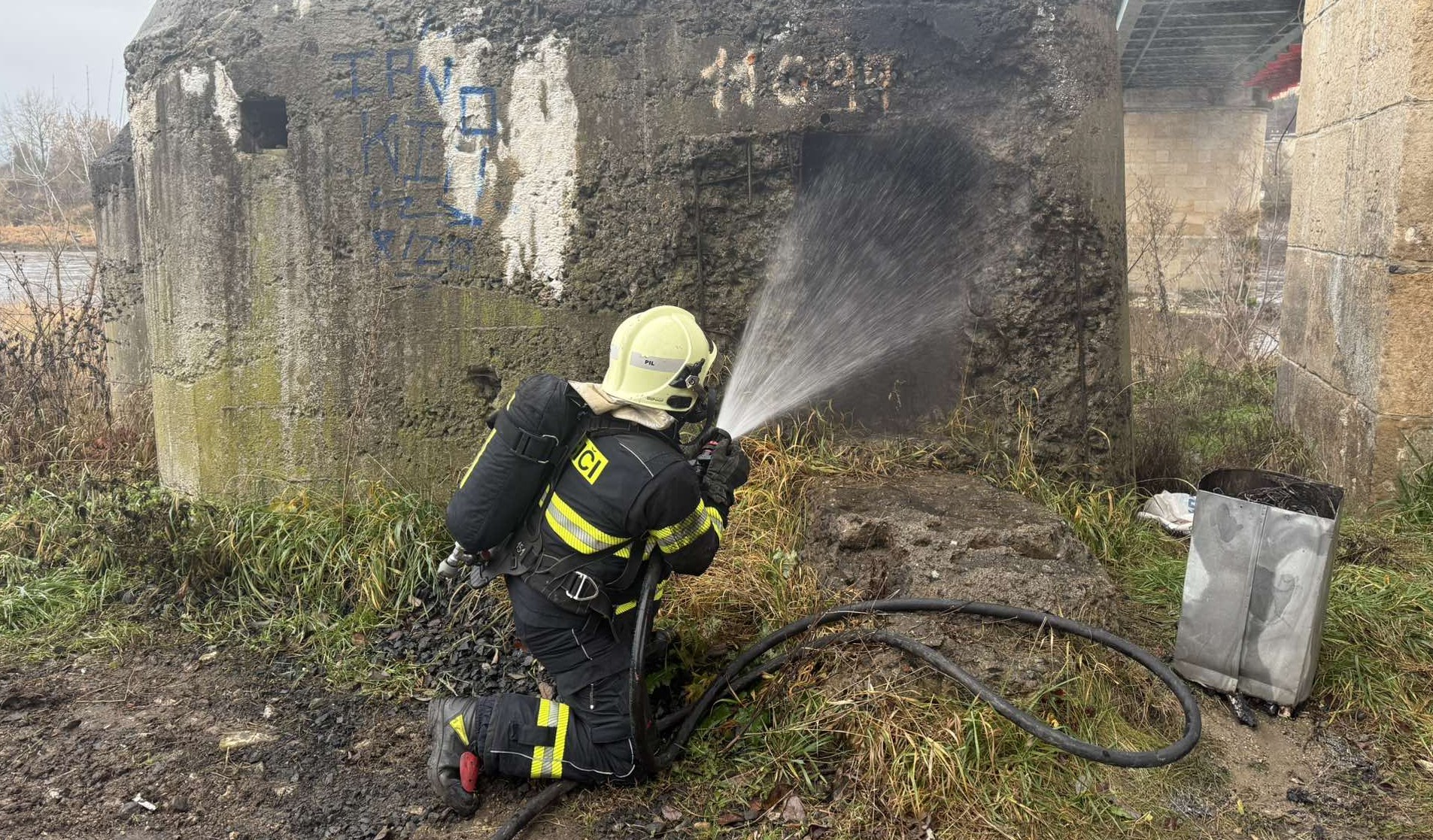 Děčín, Staré Město - Profesionální hasiči Děčín, dobrovolní hasiči Staré Město, Horní Žleb a Křešice vyjeli v sobotu 20. prosince v 8:31 k požáru bunkru u Labe, pod železničním mostem na Starém Městě. Podle oznámení byly vidět plameny a kouř.