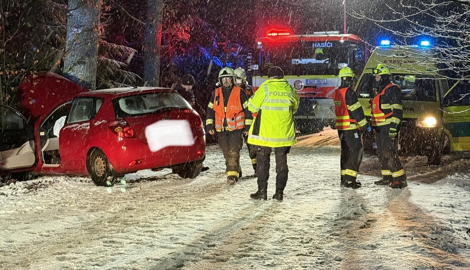 Rumburk, Velký Šenov - Profesionální hasiči Šluknov a dobrovolní hasiči Velký Šenov vyjeli v pondělí 29. prosince ve 23:31 k dopravní nehodě jednoho osobního automobilu, který havaroval do stromu. Na místo vyjeli také záchranáři i policisté. Ke karambolu došlo ve Velkém Šenově.