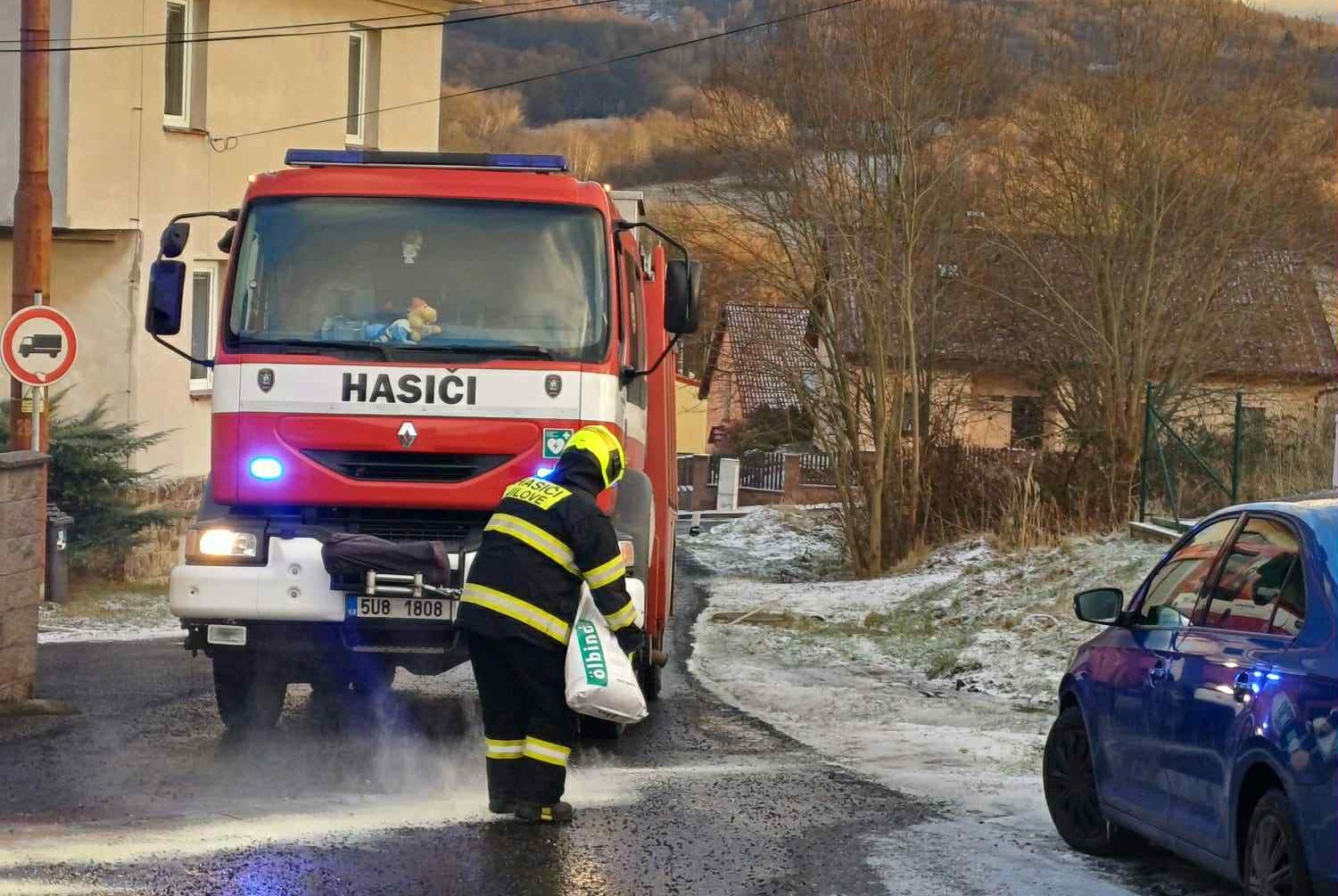 Jílové - Profesionální hasiči Děčín a dobrovolní hasiči Jílové vyjeli v úterý 30. prosince ve 14:59 k nahlášenému úniku provozních kapalin v Nerudově ulici v Jílovém. Podle oznámení byla skvrna po celé ulici.