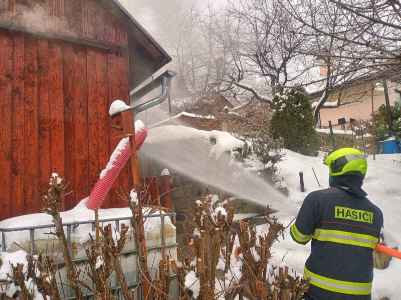 Děčín, Bělá - Profesionální a dobrovolní hasiči vyjeli v úterý 13. ledna ve 13:41 k nahlášenému požáru chaty v Družstevní ulici v Bělé. Vzhledem k tomu, že nebylo jasné, zda se uvnitř nenachází nějaká osoba, přijela na místo i záchranná služba. Průzkumem zjištěno, že v chatě nikdo nebyl.