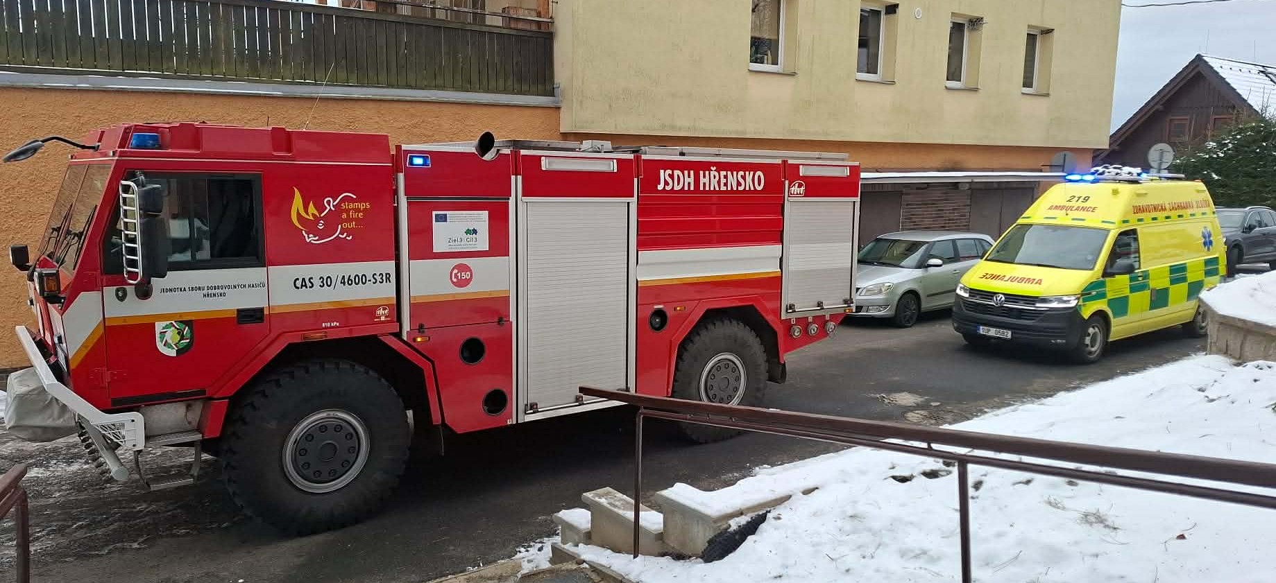 Hřensko, Janov - Profesionální hasiči Děčín, dobrovolní hasiči Hřensko a policisté vyjeli v úterý 3. února ve 12:10 k otevření bytu v Janově. Podle oznámení došlo k pádu seniorky, ta upadla doma, zranila se a bez pomoci se nemohla zvednout. Naštěstí si žena dokázala sama přivolat pomoc, kontaktovat tísňovou linku.