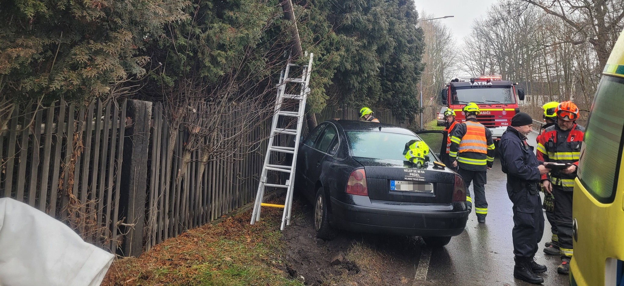 Markvartice - Celkem tři hasičské jednotky (profesionální hasiči Děčín, dobrovolní hasiči Markvartice a Benešov nad Ploučnicí) vyjely v neděli 8. února ve 12:39 k dopravní nehodě osobního automobilu, které narazilo do sloupu u silnice. Na místo vyjeli také záchranáři i policisté.