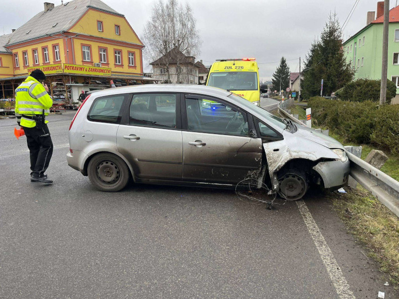 Děčín, Markvartice - Profesionální hasiči Česká Kamenice a dobrovolní hasiči Markvartice vyjeli v pondělí 9. února ve 12:10 k dopravní nehodě jednoho osobního automobilu, který narazil na křižovatce v Markvarticích na Děčínsku do svodidel.