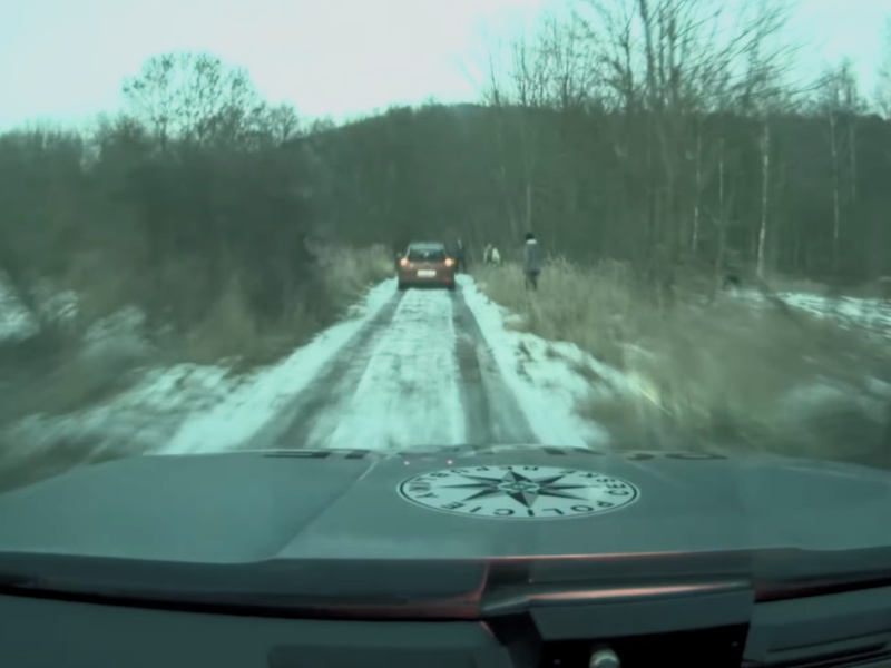 Pronásledování pokračovalo na polní cestě ke Strážkám, kde řidič na zledovatělém povrchu těsně ohrozil skupinu dětí vedoucích koně. Ty musely uskočit z cesty, aby předešly střetu. Nebezpečná jízda způsobila i splašení koní a poškození ohradníků na okolních pozemcích.