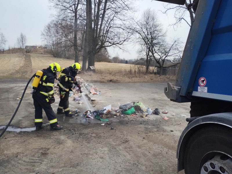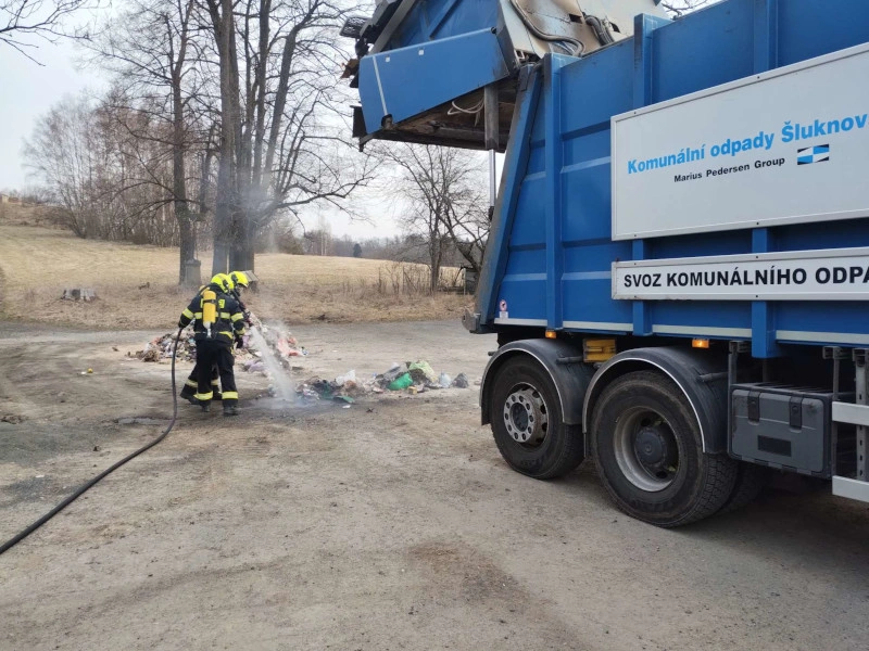 Událost byla na operační středisko nahlášena v 7:27. Posádka svozového vozu zareagovala rychle a ještě před příjezdem hasičských jednotek odpad z vozidla vysypala na zem.