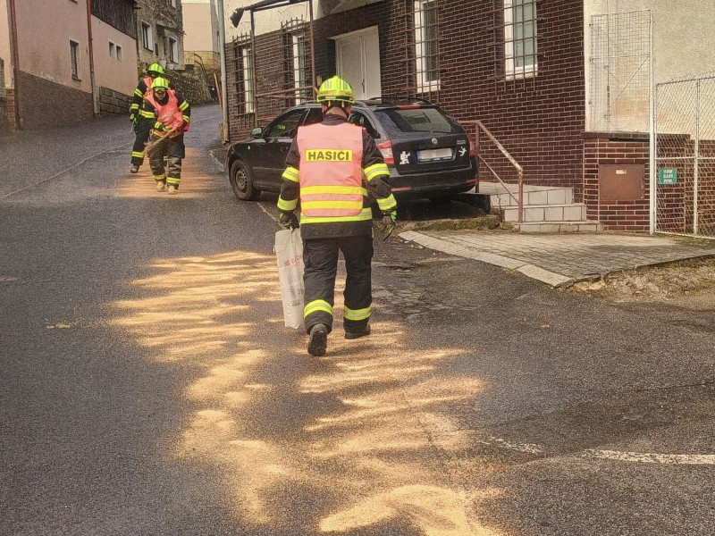 Děčín - Dobrovolní hasiči z Horního Žlebu vyjeli ve čtvrtek 12. března v 10:28 k úniku provozních kapalin na silnici z Jalůvčí až k Tyršovu mostu.