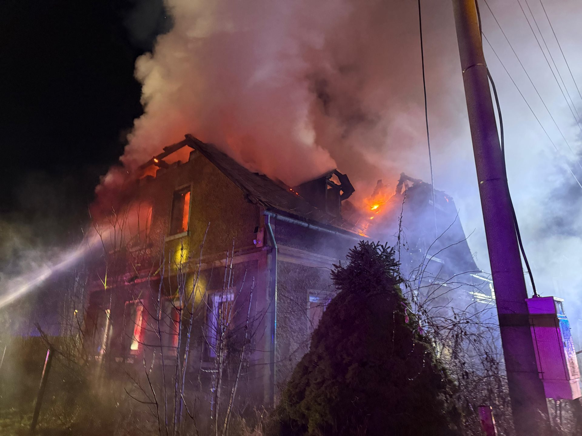Zasahujícím hasičům se podařilo postupující plameny zkrotit a lokalizovat událost krátce před půl čtvrtou. Tím však náročný zásah neskončil. Aby bylo vyloučeno další šíření ohně v mezistěnách a střešním prostoru, museli hasiči za pomoci výškové techniky začít s postupným rozebíráním konstrukcí domu.