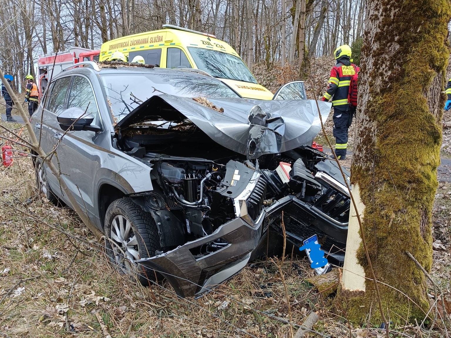 Jednalo se o jedno havarované vozidlo. To vyjelo mimo silnici a narazilo do stromu. Prokop Voleník, mluvčí krajských záchranářů uvedl, že senior byl se středně vážným zraněním transportován sanitním vozem do rumburské nemocnice a nezletilý chlapec byl letecky transportován k vyloučení vážných zranění do ústeckého traumacentra.