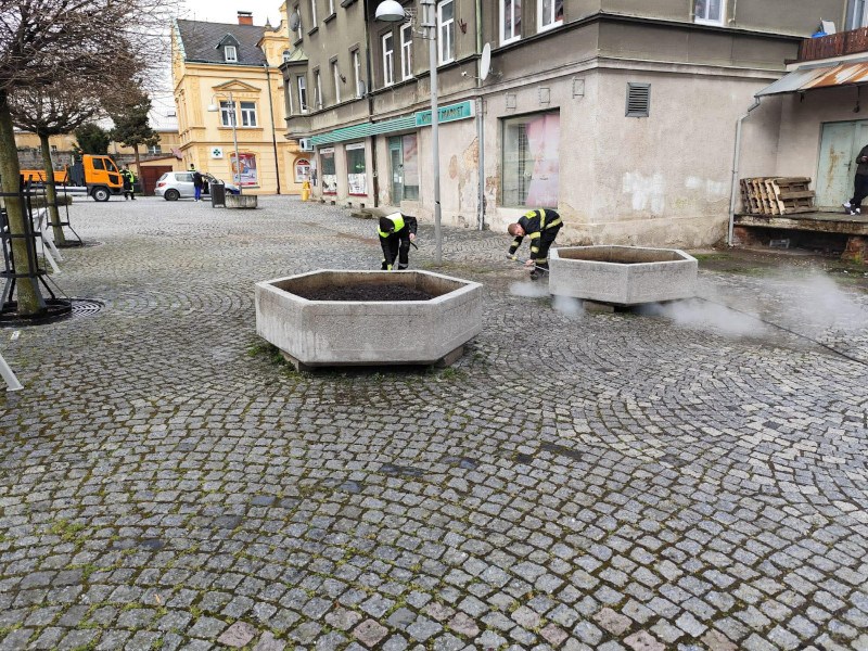 V nejbližších dnech se v květináčích objeví nové květiny. Podle starostky Kateřiny Sýkorové se aktuálně řeší i oprava kašny. Navíc při úterní očistě květináčů pomohli hasiči člověku, který měl v nedalekém obchodě vážné zdravotní problémy. Hasiči následně vyčkali do příjezdu záchranářů a pak provedli transport pacienta do sanitního vozu.