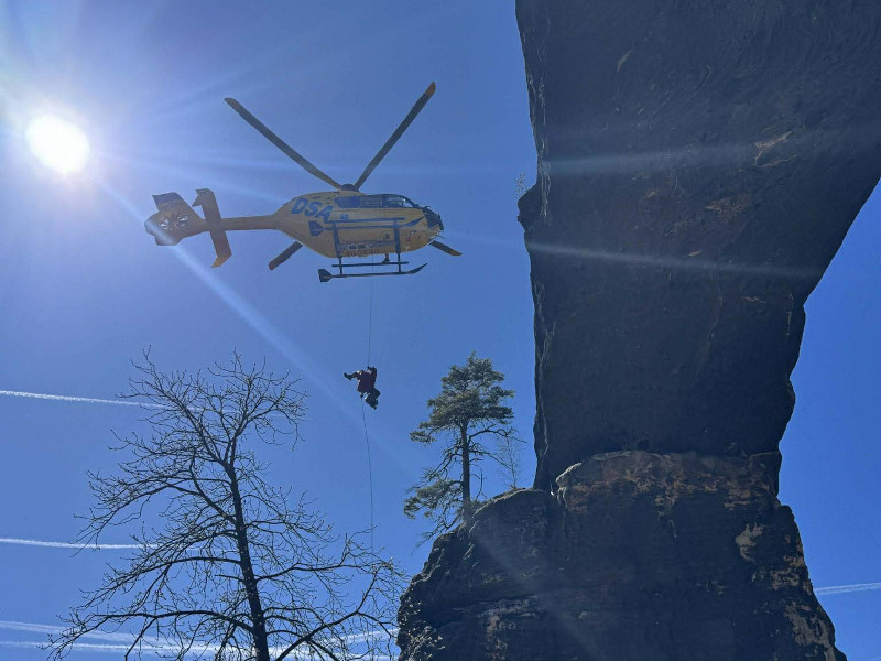 Vzhledem k náročnosti lokality a zdravotnímu stavu pacienta byl do akce okamžitě povolán i vrtulník. Celý zásah probíhá v unikátním, ale náročném prostředí pískovcových skal a vyžaduje maximální přesnost a souhru.