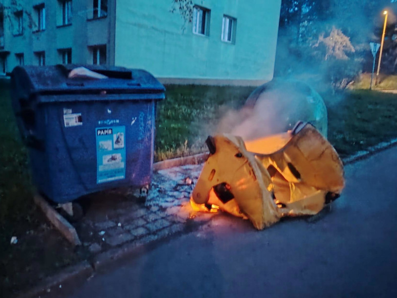 Jílové - Profesionální hasiči Děčín a dobrovolní hasiči se strážníky Jílové vyjeli ve středu 29. dubna po páté hodině ranní k požáru popelnice na tříděný odpad v Družstevní ulici v Jílovém.