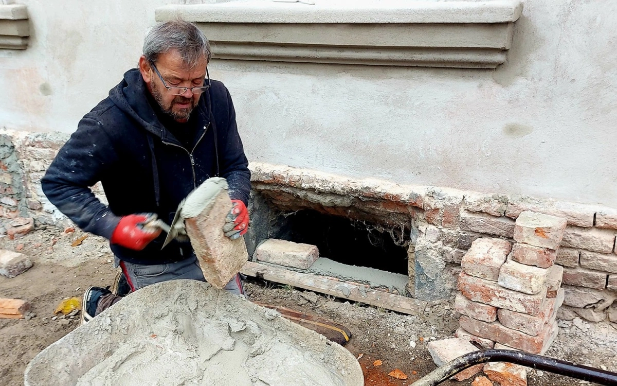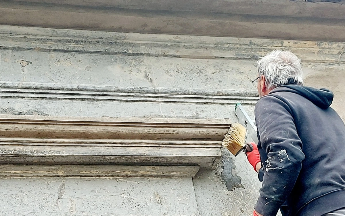 Zdeněk Strýhal zvládl veškeré zednické práce sám. Podařilo se mu obnovit i poškozené římsy, které postupně tvaroval podle formy. Foto: archiv manželů Strýhalových