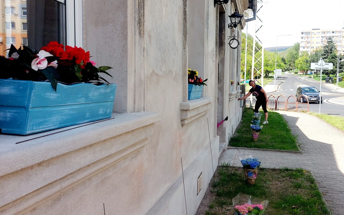 Modré truhlíky s barevnými květinami, obnovená fasáda a nádherné detaily. Mnoho kolemjdoucích se nebojí zastavit a kochat se. Foto: archiv manželů Strýhalových
