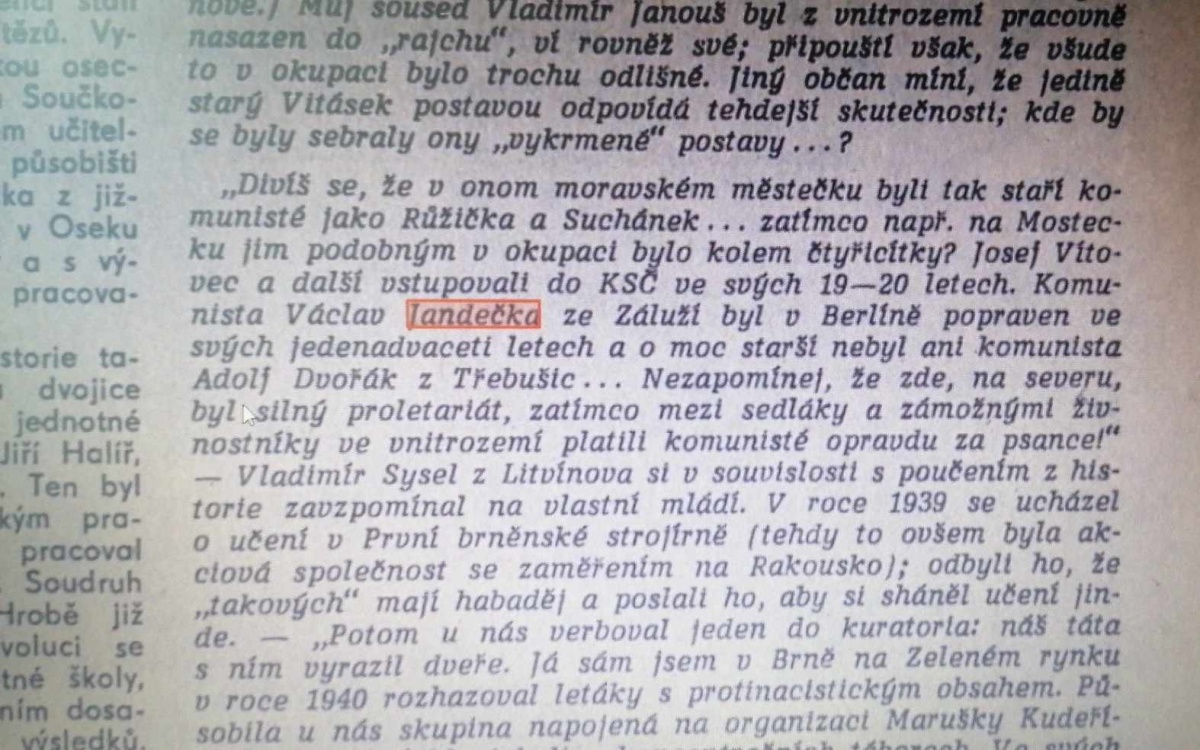 Sousední ulice je pojmenována po Václavu Jandečkovi, který působil v odboji. Zdeněk Strýhal si pamatuje, že kdysi jeho žena bydlela na půdě dnešního Jinotaje. Materiály poskytl Jan Setvák.