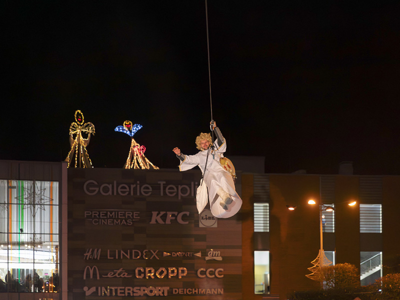 Program doplnil pohádkový příběh Divadla V Pytli, artisté s akrobacií na sedmimetrovém trianglu, na pódiu zazněly muzikálové vánoční melodie a náměstí rozzářila CÉLINE SHOW v podání Michaely Noskové, Leony Gyöngyösi a Petry Peterové. Večer vyvrcholil sletem anděla ze střechy na náměstí, slavnostním rozsvícením vánočního stromu za účasti primátora města Teplice Jiřího Štábla a závěrečným ohňostrojem.